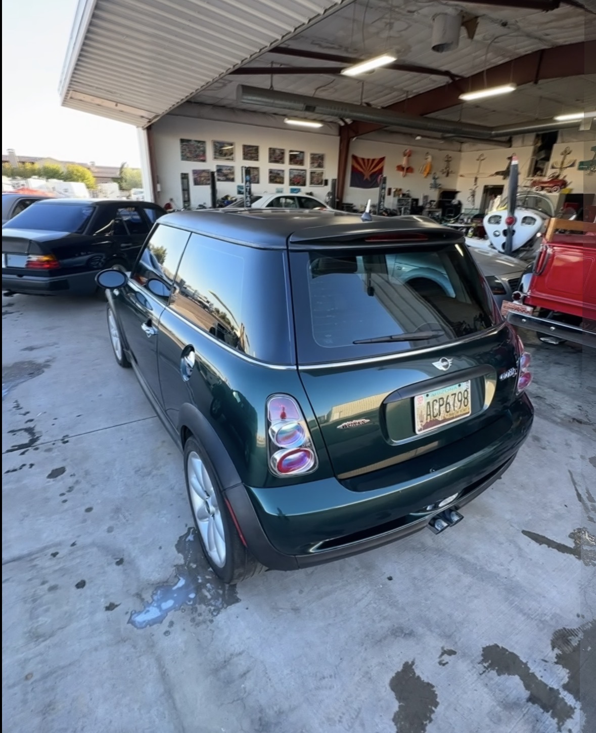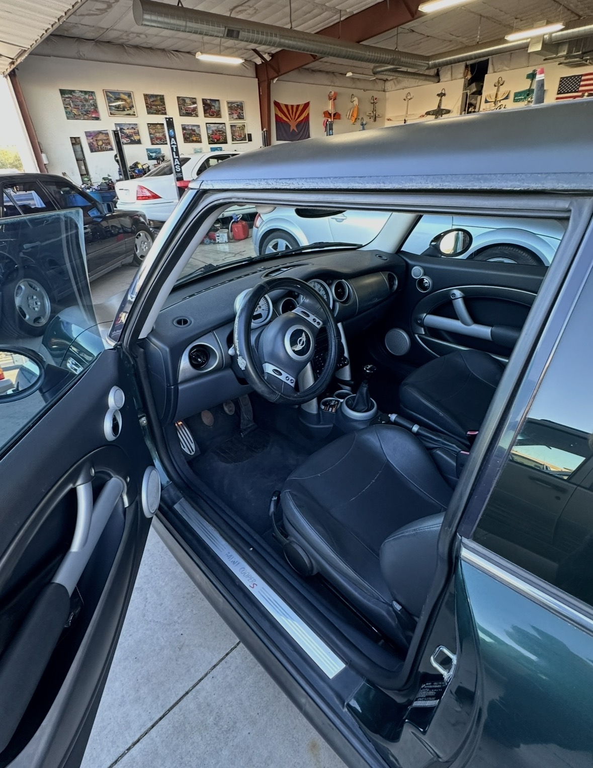 1 / 10R53 MINI Cooper S — the supercharged original. MFD 10/02. First-gen MINIs are becoming collectible. The supercharged Cooper S is the one to have. Get mileage from odometer. Dark green/black is a classic MINI color combo.